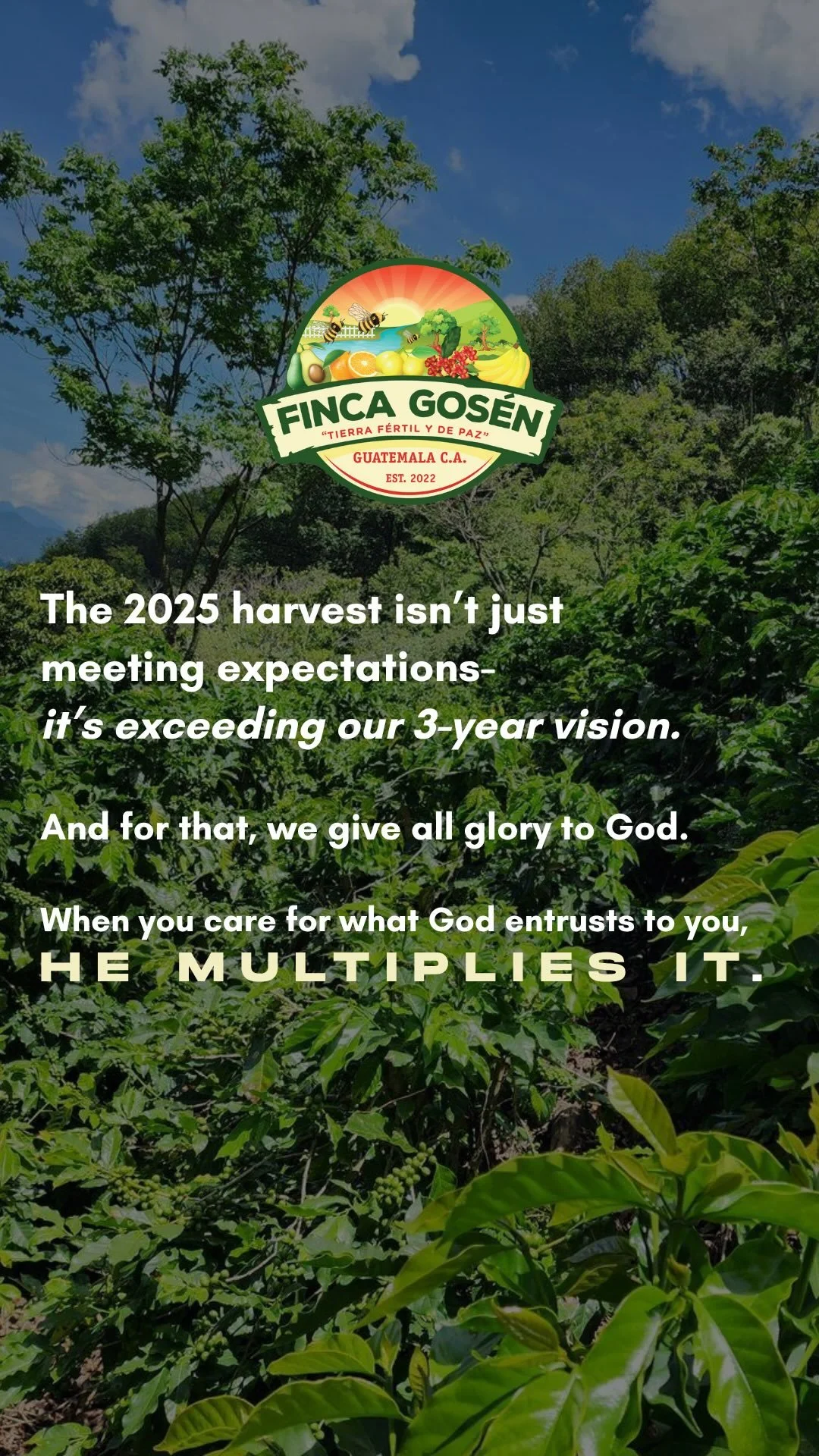 Finca Gosén was born from generations of love for the land, rooted in the highlands of Guatemala where volcanic soil and temperate climates yield some of the world’s richest harvests. Named after the biblical land of Goshen — a place of abundance, peace, and divine provision — our farm is a sanctuary where faith, family, and farming unite.